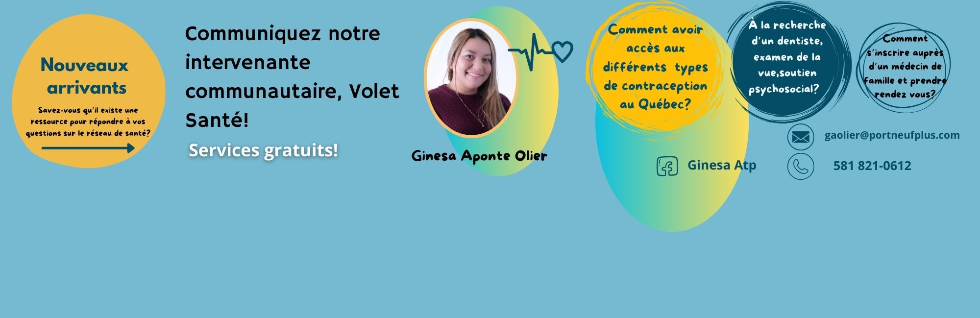 Ginesa Aponte Olier au 581 821-0612 ou par courriel gaolier@portneufplus.com